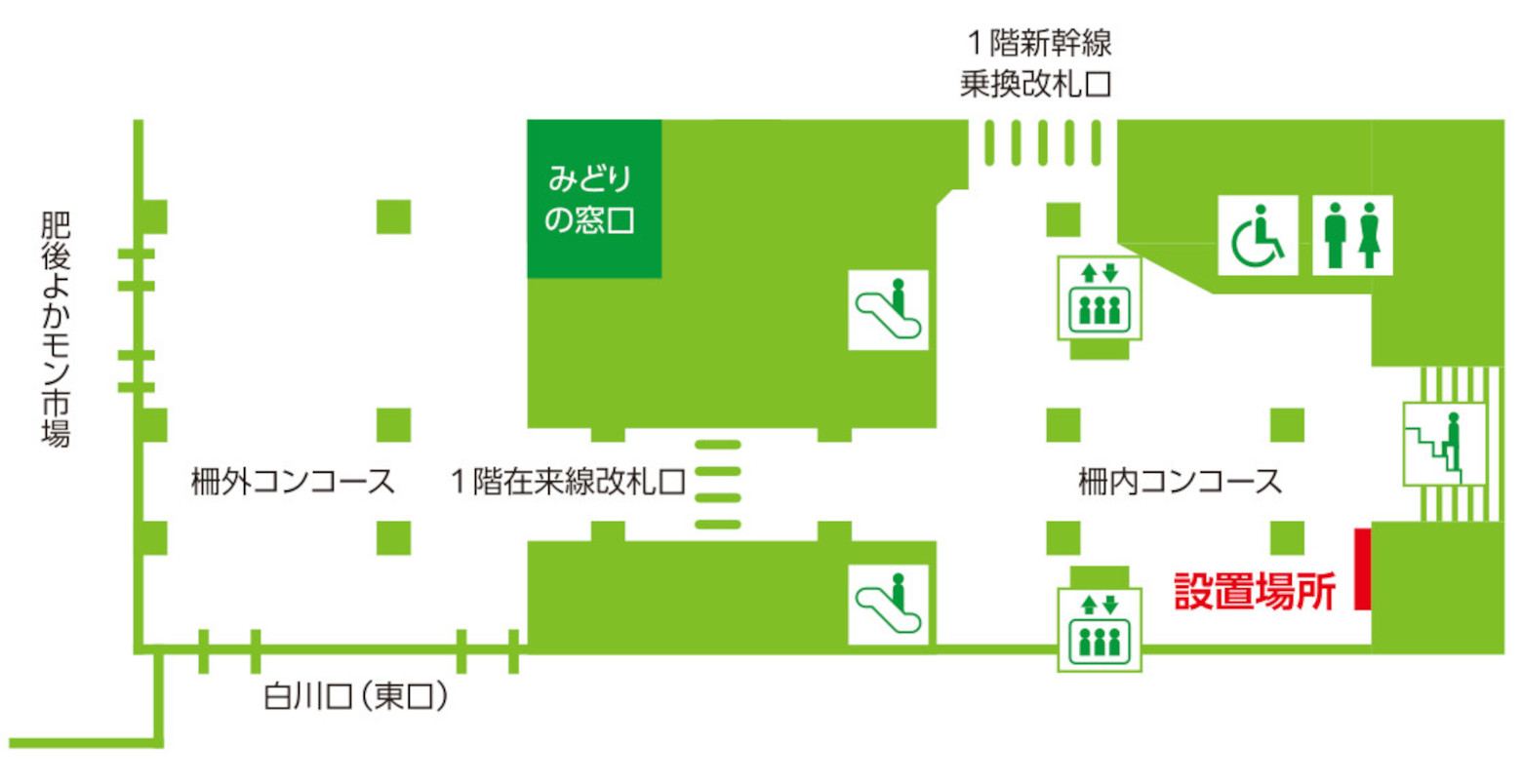 | Location | JR Kyushu Kumamoto Station, inside the ticket gates of the conventional line, 1st floor Map | Producer | CREARE Atami-Yugawara Studio |